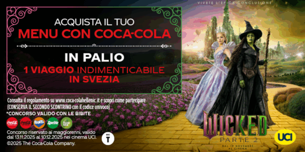 A partire dal 13 novembre e fino al 10 dicembre 2025, acquista un Menù Coca-Cola da Uci Cinemas e prova a vincere un viaggio indimenticabile in Svezia ! Per consultare…
