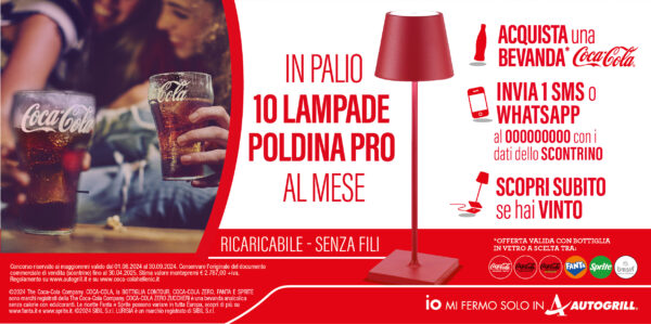 A partire dal 1 agosto al 30 settembre 2024, acquista un prodotto Coca-Cola presso i ristoranti ad insegna “Ciao” e “La Fucina” presenti nei punti vendita Autogrill e prova a…