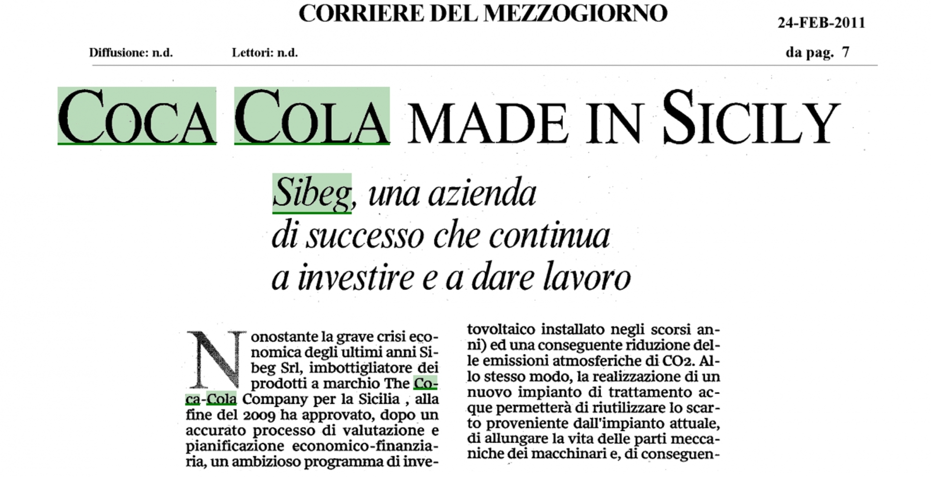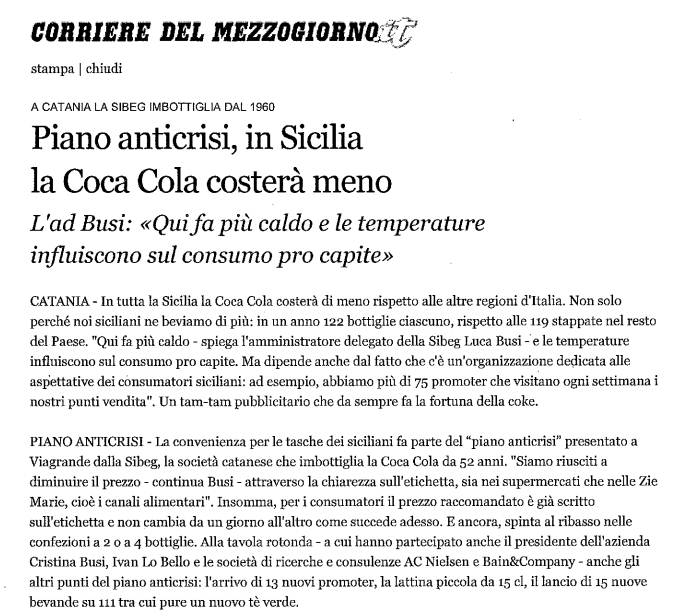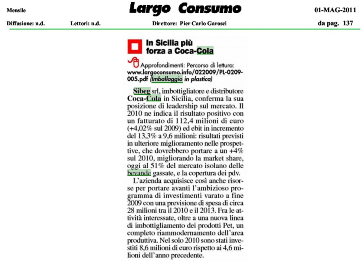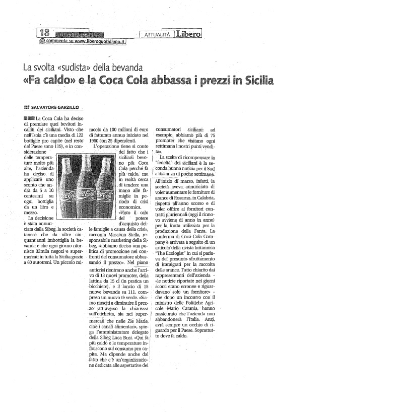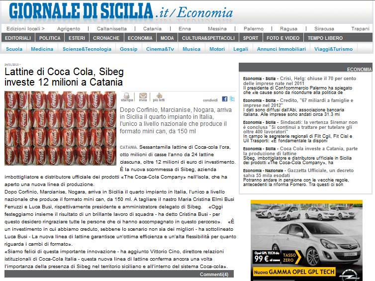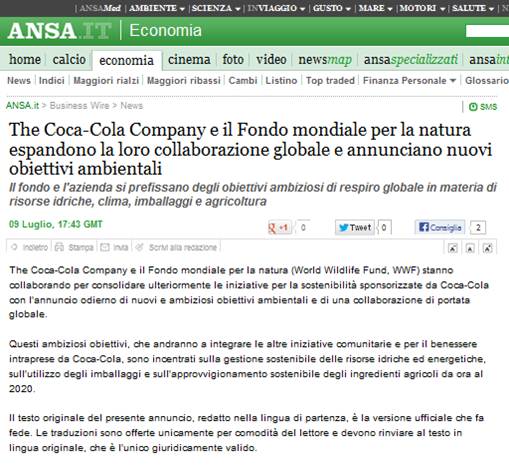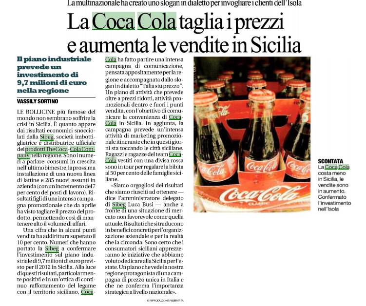 La Coca-Cola in Italia vale 22mila posti di lavoro.